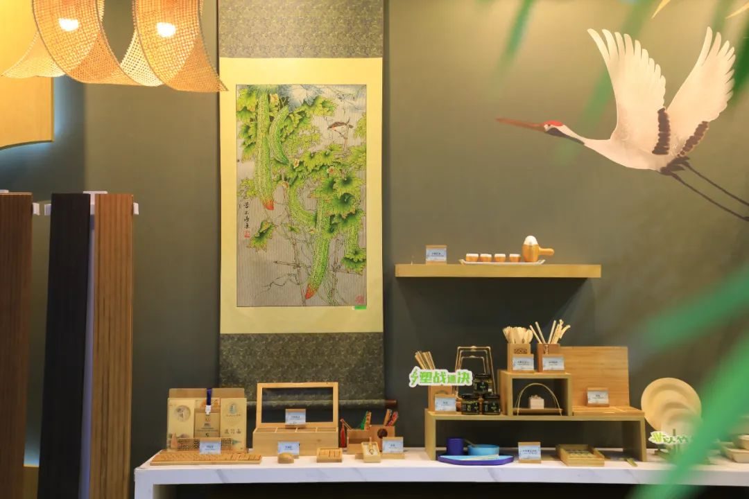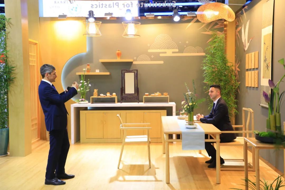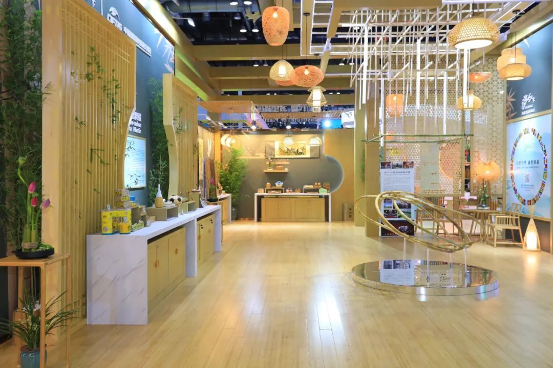 2023年中国国际服务贸易交易会今日开幕,位于北京国家会议中心一层E2-19的国际竹藤组织全竹展厅精彩亮相,丰富多样的创新竹产品受到参会代表和媒体记者的广泛关注。