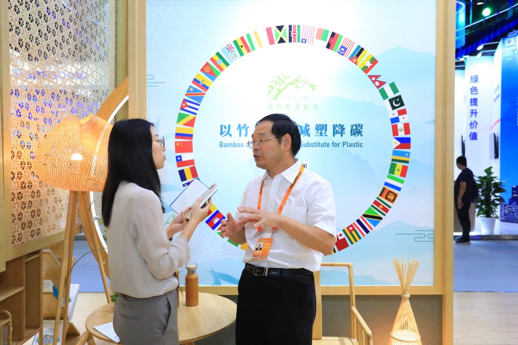 国际竹藤组织总部设在中国,今年是该组织连续第三年参加服贸会,展厅面积逐年递增。“以竹代塑、减塑降碳”,是国际竹藤组织今年的参展主题。几天来,展厅里人来人往,宣传资料被一领而空。有关服贸会现场的官方直播,不到一个小时就吸引近万名观众。