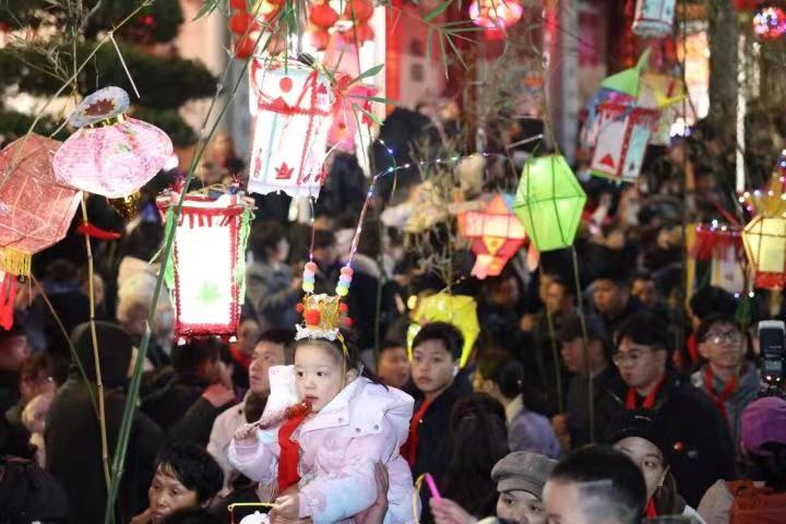 元宵节,温州市瓯海区泽雅镇周岙挑灯节热闹上演。从正月初一开始,当地村民就开始扎制各式“竹灯”(花灯),以竹篾做灯架、竹纸糊灯笼、竹枝做灯杆。竹枝尤其讲究,必须留有竹枝竹叶和竹梢,寓意美满旺盛。每盏竹灯灯面,写上自家新年“灯语”。