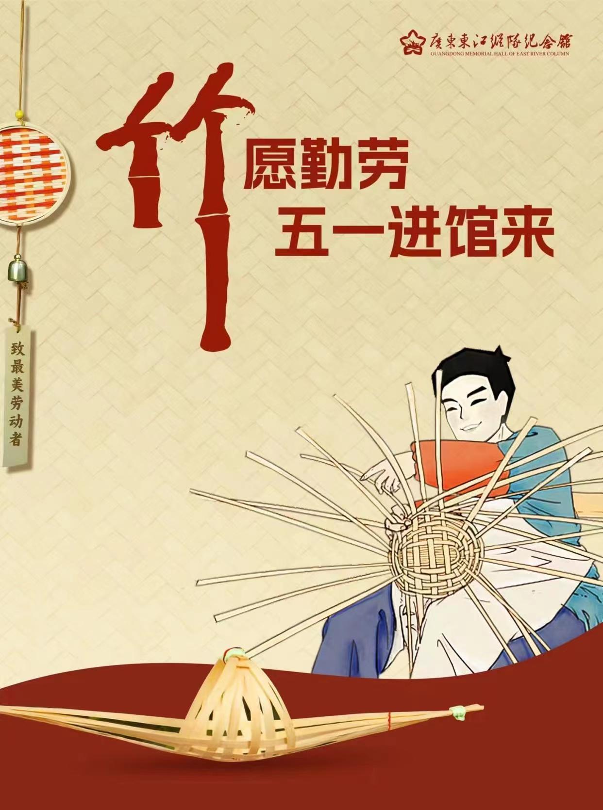 5月1日,广东东江纵队纪念馆举办了“‘竹’愿勤劳 ‘五一’进馆来”特色体验活动,吸引不少游客参观体验。游客在“致最美劳动者”景观区结伴合影打卡,参观“东江民俗竹编文化展”,体验竹编工艺。