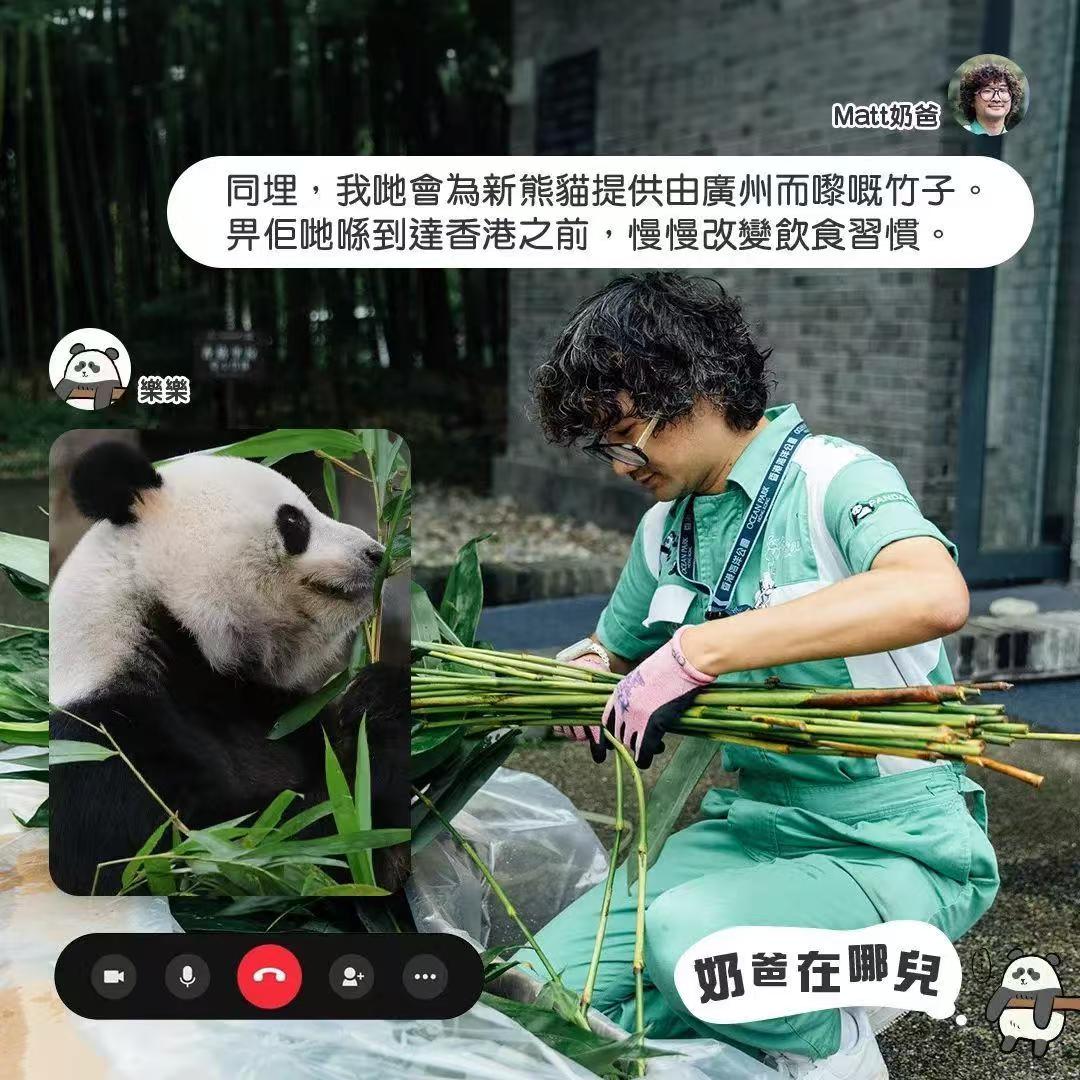 香港海洋公园《奶爸在哪儿》第一集透露,由于赠港大熊猫习惯吃四川的竹子,赴港前需要改变它们的饮食习惯。为此,香港饲养员提前2个月来到四川,开始为大熊猫提供来自广州的竹子。