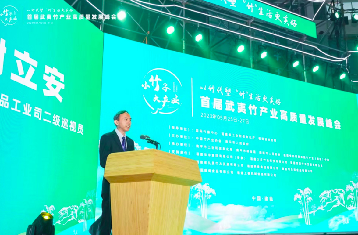 5月26日上午,首届武夷竹产业高质量发展峰会在福建省南平建瓯市开幕。峰会以“小竹子 大产业——以竹代塑 ‘竹’生活更美好”为主题,由国际竹藤中心、福建省工业和信息化厅、福建省林业局指导,中国竹产业协会、南平市人民政府主办,南平市工业和信息化局、南平市林业局、建瓯市人民政府、福建省协同创新院竹产业(建瓯)分院共同承办。来自竹区各地的政府部门领导、科研教育专家、企业家、社会组织和“中国竹子之乡”代表等约800余人参会。